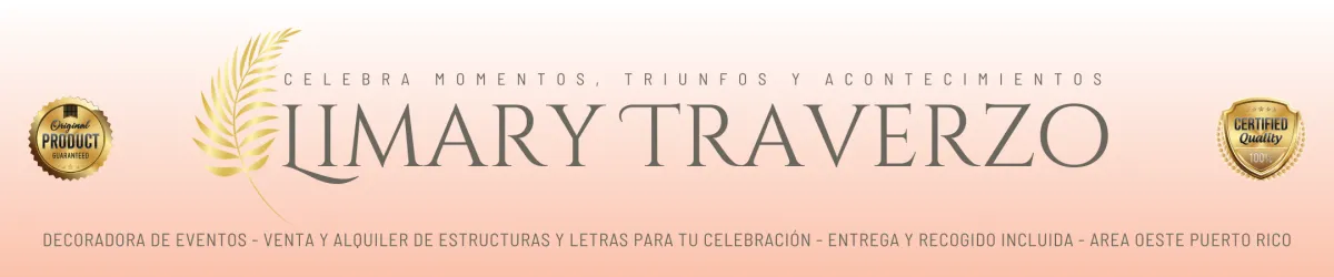 En el corazón del área oeste de Puerto Rico, Limary Traverzo se ha consolidado como una decoradora de eventos reconocida por su creatividad, excelencia y compromiso con cada celebración. Especializada en todo tipo de decoraciones para eventos, desde cumpleaños, bodas y quinceañeros hasta eventos corporativos, lanzamientos de marcas, baby showers, gender reveals y eventos de iglesias, Limary convierte cada ocasión en una experiencia inolvidable. Su trabajo destaca por el uso de estructuras personalizadas para decoraciones, incluyendo la popular estructura de arco que añade elegancia y estilo a cualquier montaje.